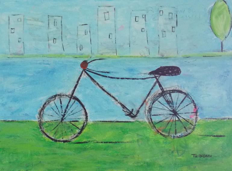 A man on a bicycle notified me while I was on the sidewalk by ringing his bell and grinning broadly as he rode. My first thought was, "I miss having a bicycle, especially one with a bell and a basket." He served as my inspiration for completing this mixed-media artwork with black sides, charcoal pen...