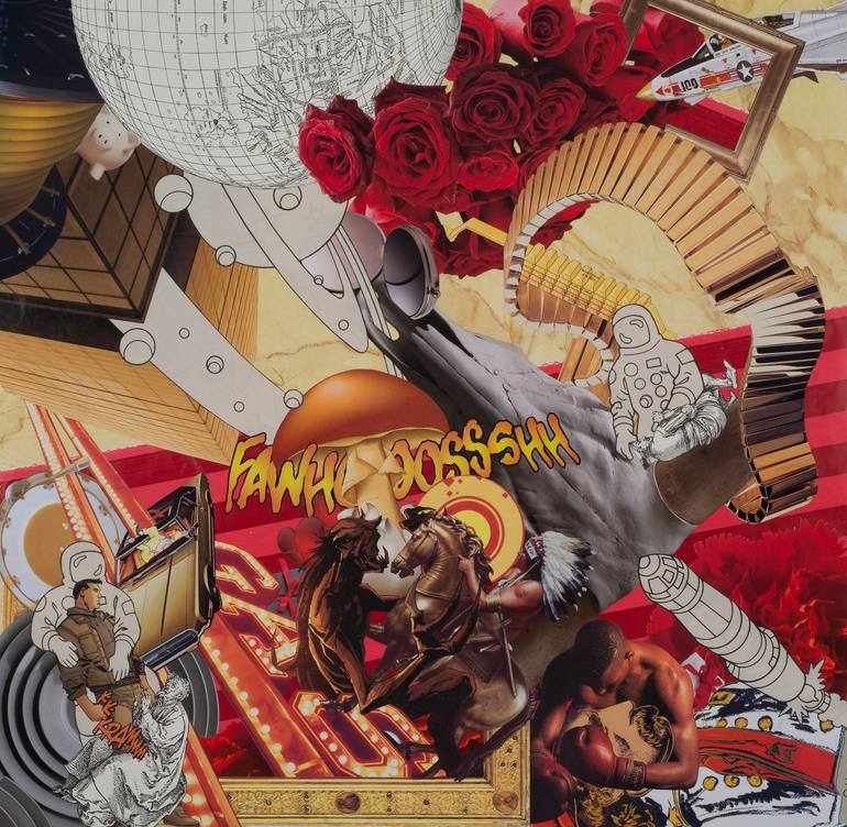 Hand-cut paper collage assembled with archival glue and tape. This giant collage includes elements from coloring books, comic books, art books and magazines. Frame size: H 30" x W 30.5" Exhibition history: "David Lavine: Collage," BGSQD / Bureau of General Services - Queer Division, New York, NY,...