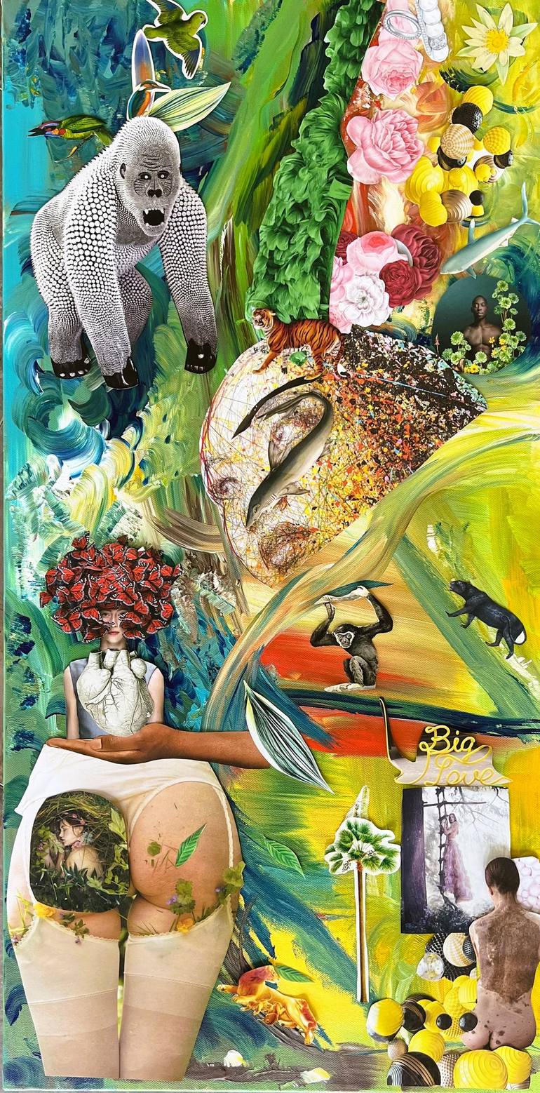 Collage imaginaire avec animaux ,humains ,plantes, fleurs ,tout est relié !