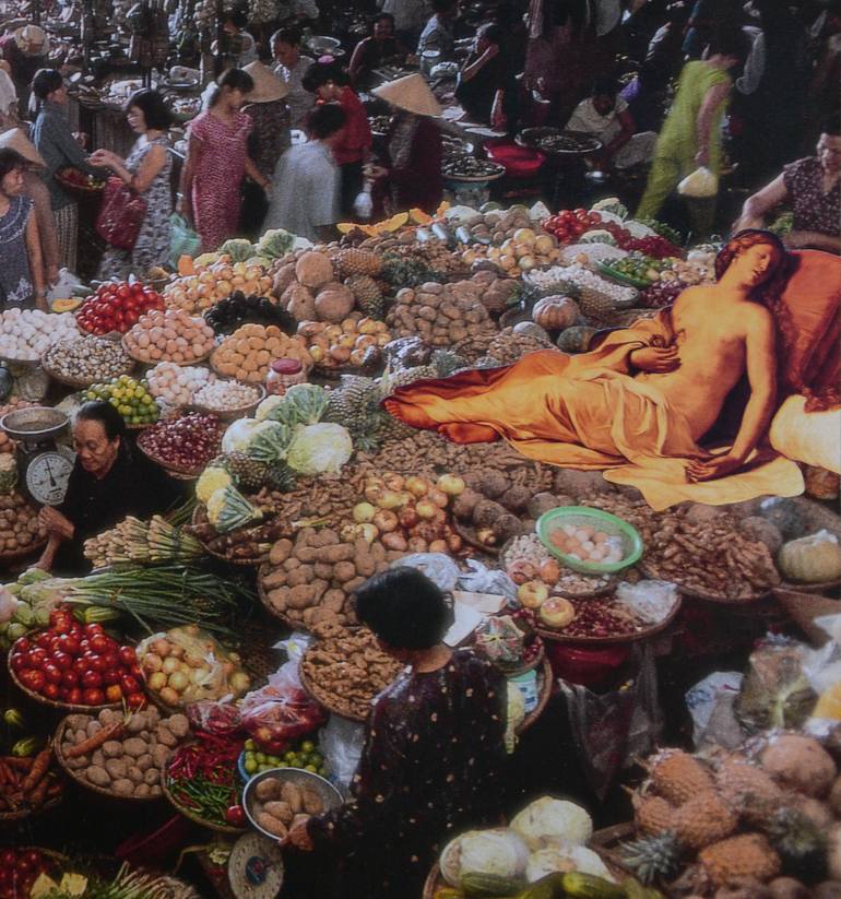 Mary travels decades to lay and rest in sprawling Asia, soaking up its colors and flavors. Handcut, signed and framed in a beautiful multi-layered brown wooden frame. (30cmx24cm)