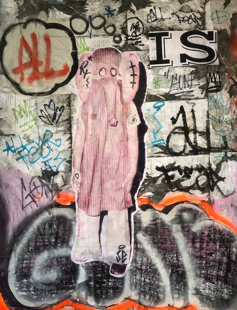 I'm a Brazilian mixed-media artist who likes pop culture, urban and vintage aesthetics. My work is primarily focused on collages made from discarded materials like office paper, old book pages and cotton textiles that I use as supports for my paintings. These materials allow for rich textures which give me te ability to mimic the impression of old walls with paint, poster fragments, and graffiti that have accumulated over time, in order to convey the influences of my art, mostly the pop art of the 1960s, the graffiti of the 80s/90s and the recent street art movement. Sharing beauty and upholding what is true and good are my goals, hoping that my art may uplift, bring joy and energize those who value my artworks.