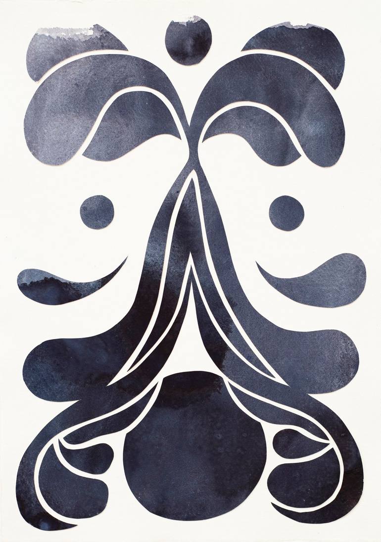 In this series of "Mirrors in the Earth" (the title is borrowed from a book by Asia Suler), I explored ressembling pairs: once I have cut-out a shape, I work with the negative, what's left from the cut-out, and layer it on a watercolor wash. This way, two artworks are mirroring each other, complimen...