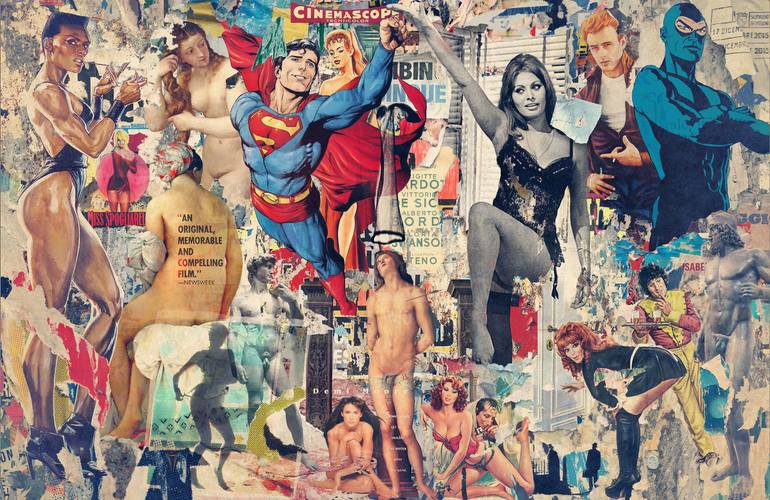 Rome, 5th October 1964. Inspired by the decollage of Mimmo Rotella, Brivido Pop physically and digitally tears and rips billboards around the city to expose, layer after layer, an overlapping that is a century-old and discovers unprecedented and fascinating combinations. It is an aesthetic short circuit, a bizarre but ingenious slot machine. The final product is a digital "ricollage" printed on canvas (edition limited to five copies) and enhanced with genuine peeled paper that blend into the photographs so as to further confuse the eye… “I like watching people walking down the streets to find out aesthetic resemblances matching the classical art works” Final participant of Saatchi Art Showdown for ‘Pied-a-terre’, Paris 2011. Featurings on Saatchi Art’s hompage: Piloni & Veline featured in the "Statement Art for Above a Sofa" , 2015 Divine Creature featured in the “Inspired by Old Masters” Collection, 2015 Una Fame da Squali featured in the 'Hollywood' Collection, 2015 Fronte Retro featured in “The Figures et Nudes” Collection, 2012