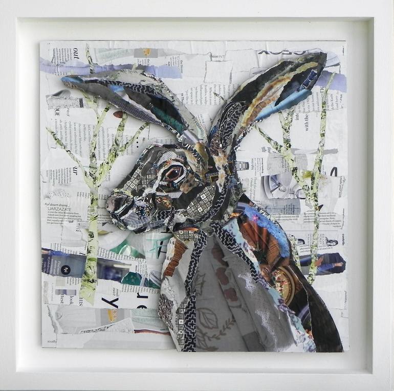 With the New Year brings new direction with the introduction of the integral float mount.. Here we see my favourite medium of using ripped paper from magazines (great for the environment) working straight onto corrugated cardboard. Mr. Hartley Hare here is in relief set onto his snowy background hea...