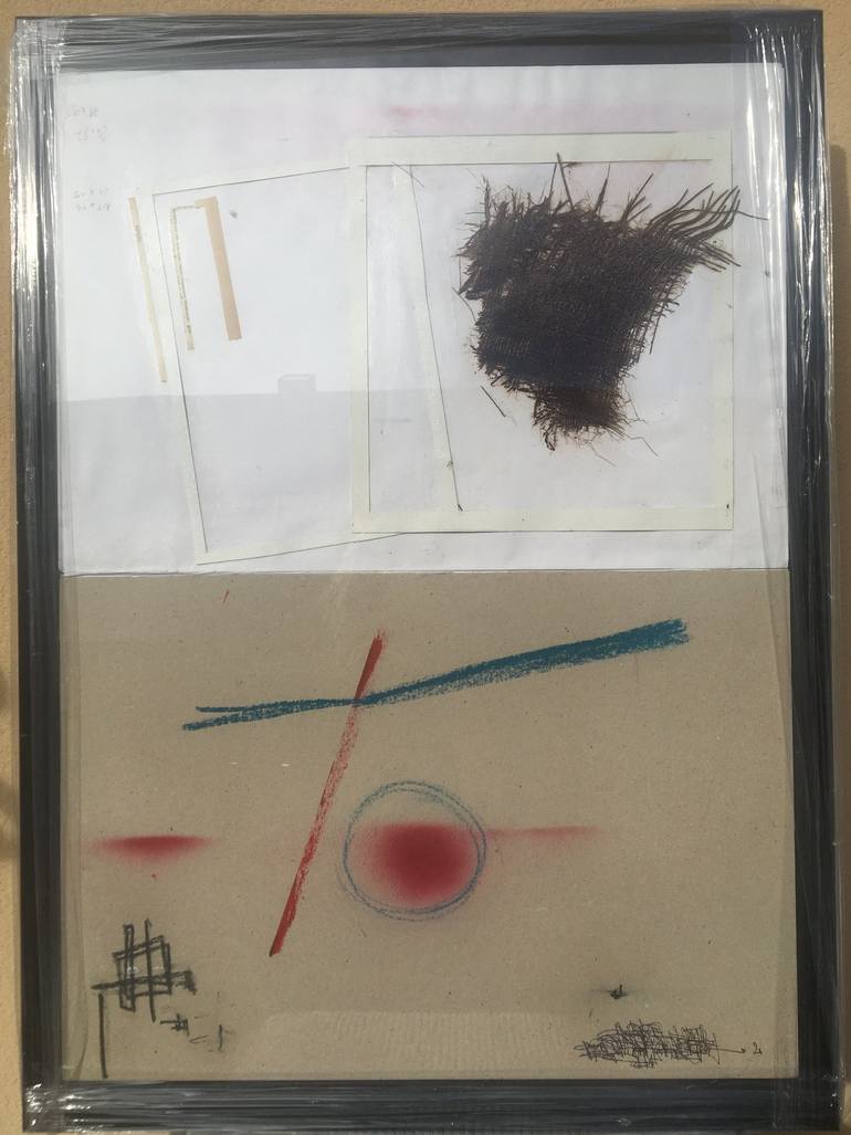 This cluttered multimedia collage, mirrors the sloppy post pandemic world with sparse rests of languages, humanity, emotions and nature. At the same time its spacious emptiness can be calming or uncomfortable, in a futuristic dystopic style. It comes framed with glass ready to hung the band of trans...