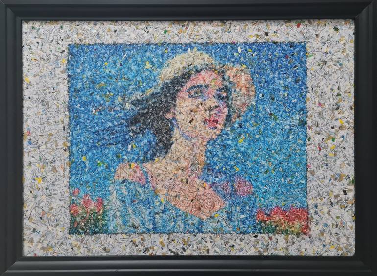 My works are made using thousands and thousands of little pieces of paper that, assembled together with acrylic colors, give life to figures. In my recent works I am exploring the female universe and their figure of women treated like "dolls", too often victims of violence: "not your doll" is the title of the series. With these works I try to interpret the emotions of women who wear these clothes and would like to shout out their anger to the world, but unfortunately many cannot do so. So I try to identify with them, shouting out their anger and their desire for redemption to the world for them. The sharp looks of my subjects shout out anger in their sweetness, in their expressions composed of thousands and thousands of little pieces of paper with the words of their daily life written on them. Finally, in my latest works, there is always one or more little pieces of paper with the hashtag "#FreeIran" written in support of the daily struggle that the female universe must currently sustain in a beautiful country rich in history such as Iran. Finally, since my works are all composed of recycled paper, I transform garbage destined for the waste paper bin into emotions.