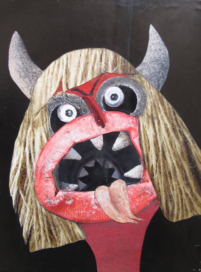 I live and work in West Sussex and graduated in 2005 with a first class degree from Wimbledon School of Art. Inspiration for my work usually starts with my experiences, insecurities,the people that I meet and general observations on life. I like to capture these moments in collage or paint, with humour (at times rather dark) and candour. They can also take me into the fantastical and abject. My own photography plays an important role in my collage along with other printed material and found objects. Some ideas seem more suited to collage and others to paint or clay. I enjoy playing with concepts of 'low' and 'high' art and encourage the viewer to use their imagination, and bring their own stories to the situations that I create. I also work as a volunteer in the art department of a hospital for neuro-disability enabling the residents to make art. I am currently showing my latest work 'Atropos and the Aged' in the Showdown Surrealism exhibition. Atropos is the Greek goddess of destiny and ends the life of every mortal by cutting their thread with her 'abhorred shears.' As usual, the piece is based on my own experiences, this time of caring for my terminally ill mother. Questions of mortality, and attitudes towards our eventual demise have come to the surface.
