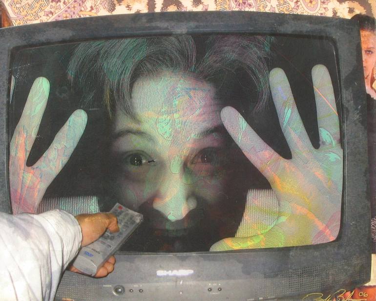 Ever worry you're really in the Truman Show? You may not be Jim Carey, but life feels more like a dream everyday. This work imbues a panic over the amount of television we watch while showing the panic the producers and actors must feel when we actually switch them off. The original is hand-cut...