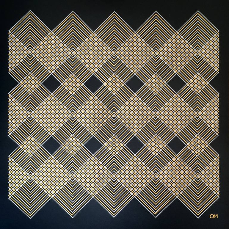 Had-cut acid-free (silver, gold and black) paper and glue. This artwork was first conceived digitally. Then, each one of the 30 layers was hand-cut and glued together to created a simple, yet intricate, pattern. My goal with this piece is to show that simple lines and shapes (such as a square) can...