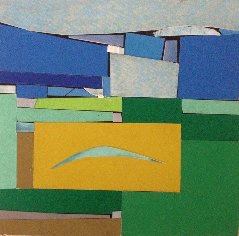 Inspired by my love of Provincetown on Cape Cod, the dunes and seagulls are seen here inspire me all the time to create beautiful works of art. This is paper on paper, part of which was cut up from a watercolor painting.