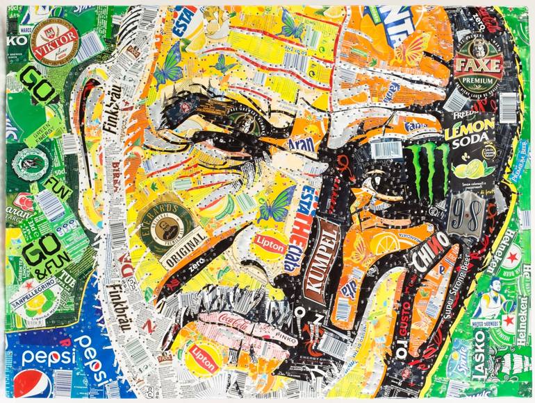 this work, Sean Connery, is part of the result of many years with this innovative technique, collage of recycled beverage cans, and we clearly find an environmental and ecological message.. this texture is interesting because it varies with each change of light.. the works do not need a frame becaus...