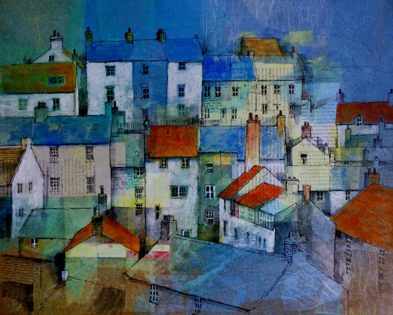 Collage with acrylic on canvas board inspired by the random house pattern.