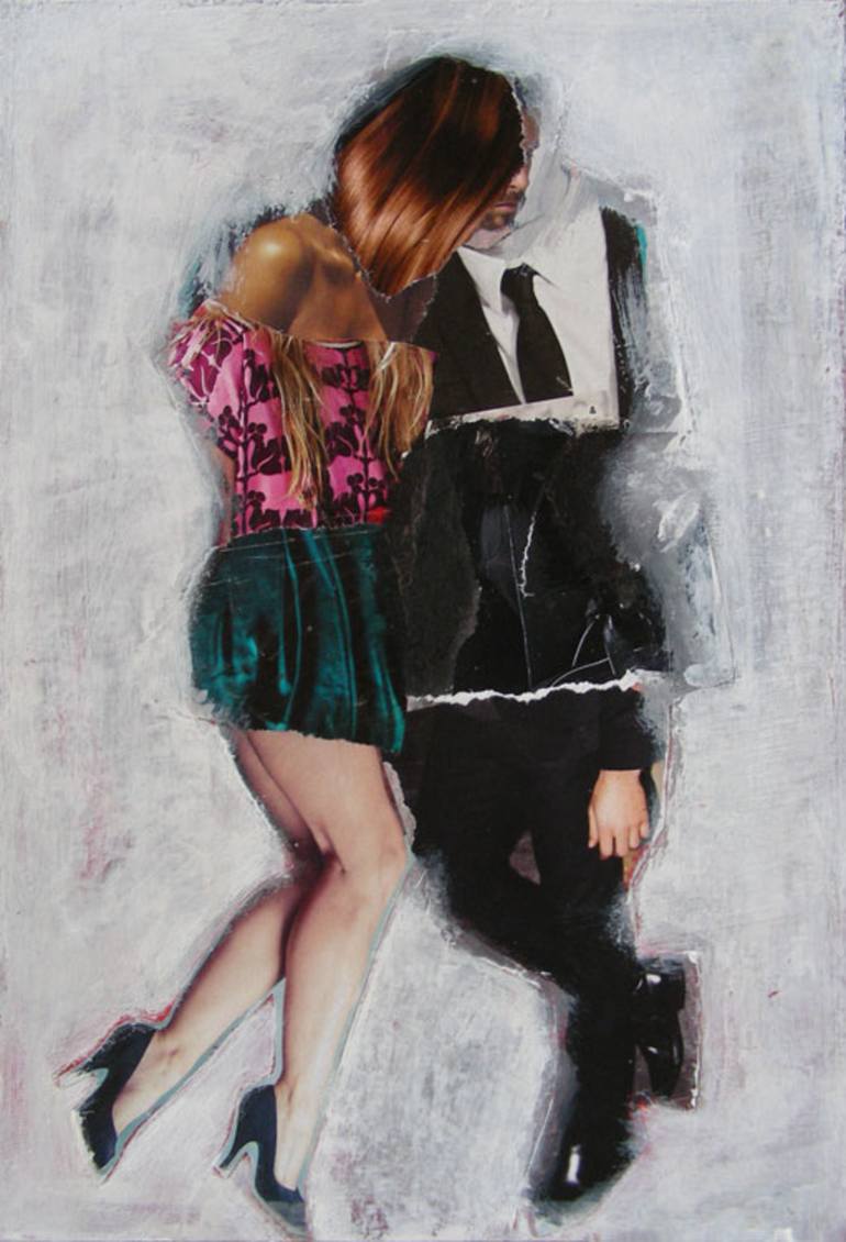 Bettina Costa was born in Rosario (Argentina) in 1965. Autodidact, her talent shows the legacy of his father Aldo Costa (illustrator and painter). She lives in Switzerland since 2001. Her journey as plastic artist began in Argentina with a realistic style, strongly marked by the conflict between what she believed she should paint and what she wanted to paint. The abstract world called her, and the understanding that a painting does not necessarily need to be exactly like the reality it represents, gave her wings to fly into the world of the abstraction. Rough terrain, sinuous and complex; the multiple layers covering her abstract works (paper, plaster, acrylic) invite the observer to discover and perceive a world full of shapes, colors, lights and shadows. The nostalgia for her homeland makes her appeal to a new theme “Tango”; connecting thread of her current works “Tango de Papel“, “Tangollage” and her latest series “Pasos de Tango“. With a personal technique, using collage and acrylic, the artist manages to bring together movement, passion and music, she overlaps suggestive images, harmonic and contrasting colors, which act with even intensity on the surface of the paper and on the feelings of the observer. Bettina’s works invite us to travel to Argentina, to feel the magic of tango; sensual and popular dance, human figures, anonymous persons moving to the beat, tight embraced bodies, thoughts drifting into the distance, squinted eyes, legs that caress and entwine. Music that penetrates the soul and leaves the body as movement. Her works invite us to dance. Original text (Spanish) by María Milagros Labrador - Art critic - Universidad Nacional de Rosario – Argentina