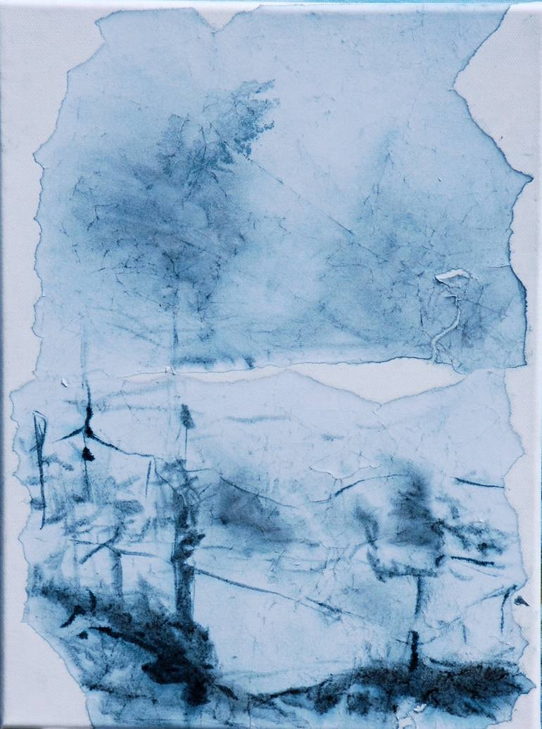 Work is about long trip, wide lands and loneliness. Technik is froasage. Made with paper, water and ink