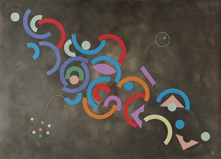 I used geometrical forms in order to create movement on this composition of a playful abstract machinery.