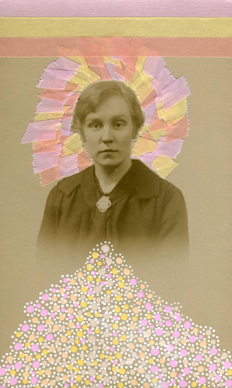 Overview: The "fuzzy" look around this vintage portrait suggested me to recreate a visual and imaginary pastel foggy look. Materials used: Pens and washi tape on vintage postcard. Important notes: • This is an original contemporary art collage realised on a vintage postcard. • All the works have...