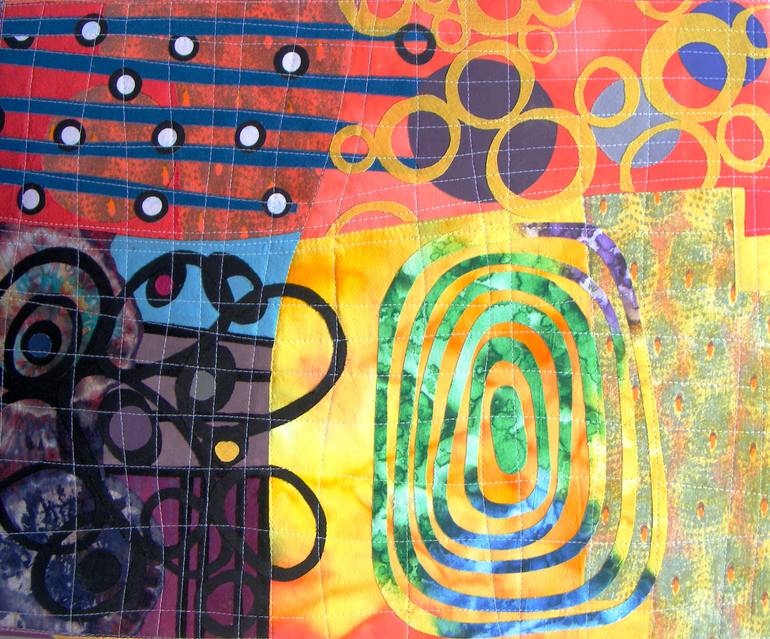 Artwork inspired by Welsh folk tales and the story of Taliesin. Each piece is full of abstract imagery, textures and doodles and is much like in a dream language where so many symbols and memories create a personal message. Improvisational stitched collage. Made from resist dyed and painted cotton ...