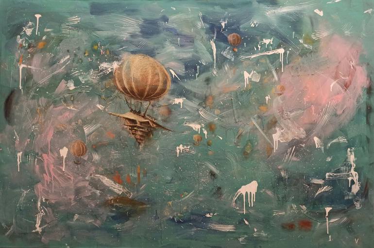 painting collage .size 150 * 100 painted in 2020 with aryl paints and pastels.
