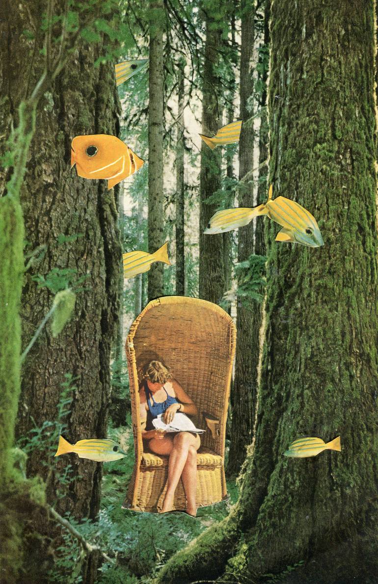 Inspired by my love for woods and fish and also for what people assume is impossible... Handmade collage made out of vintage photography.