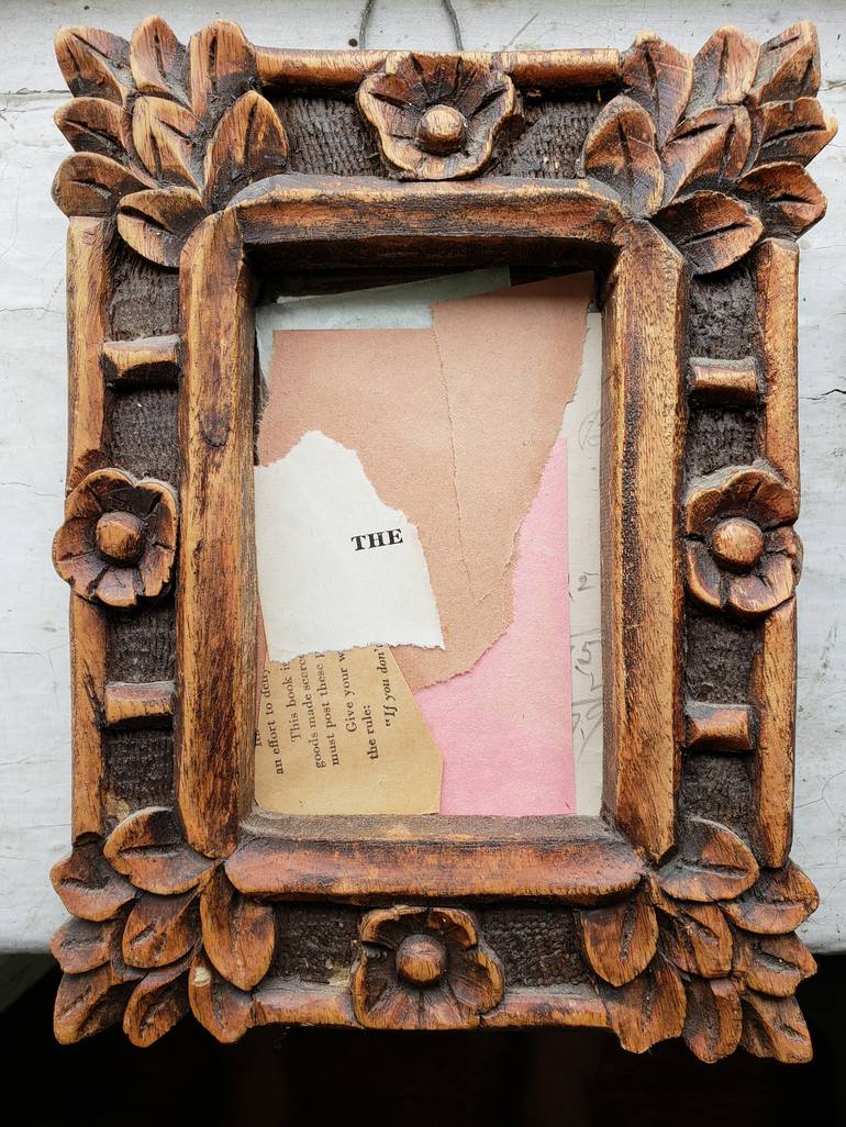 Discreet and minimal collage on a mirror in a hand carved frame. the T͟Hē,T͟Hə/Submit determiner 1. denoting one or more people or things already mentioned or assumed to be common knowledge. "what's the matter?" 2. used to point forward to a following qualifying or defining clause or phrase. "the ...