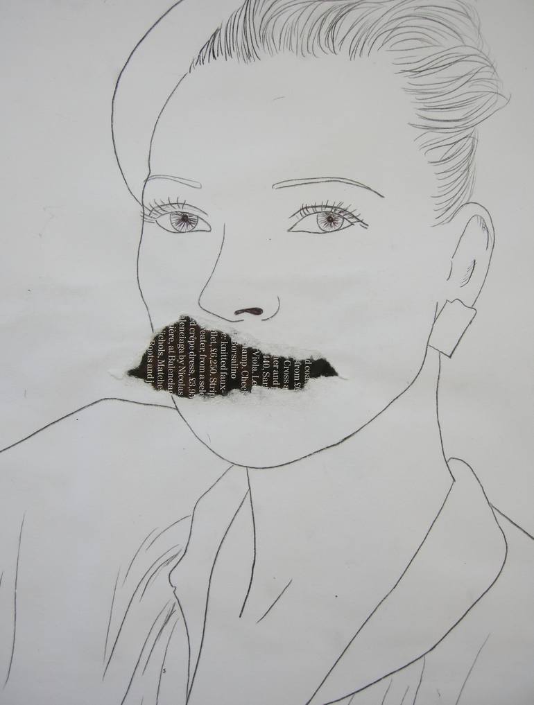 "Torn 02" is a mixed media paper collage with line drawing. The artwork is inspired by the fashion world, and the role that women play in society The artist finds inspiration in the dynamic realm of fashion and the multifaceted roles women hold in today's society. This small-sized collage is a stri...