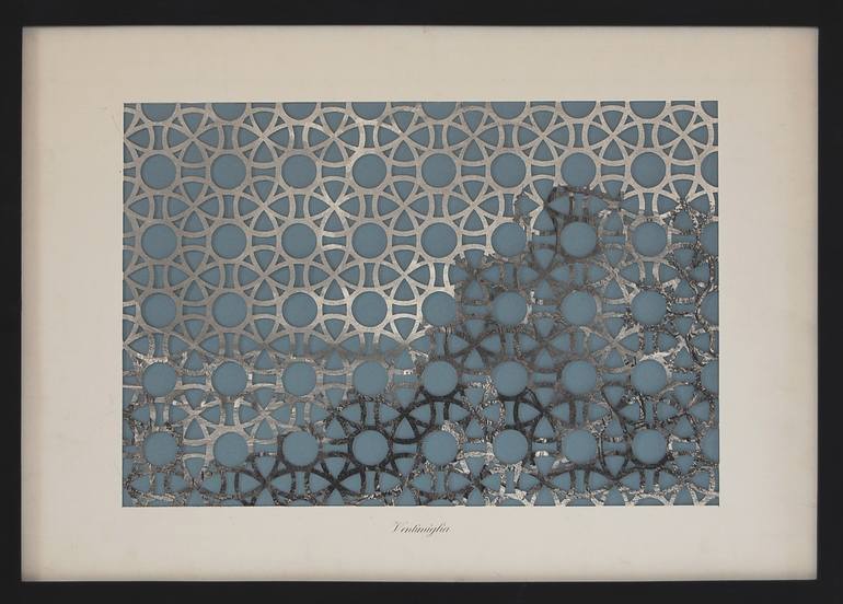 I used traditional etchings as the base for my new geometric collages. I drew a geometric lattice pattern on the reverse of the print and hand cut shapes to reveal an intricate pathway across the landscape print. The 'cut-out' remains a single sheet and is simply the top layer of the collage, with a...