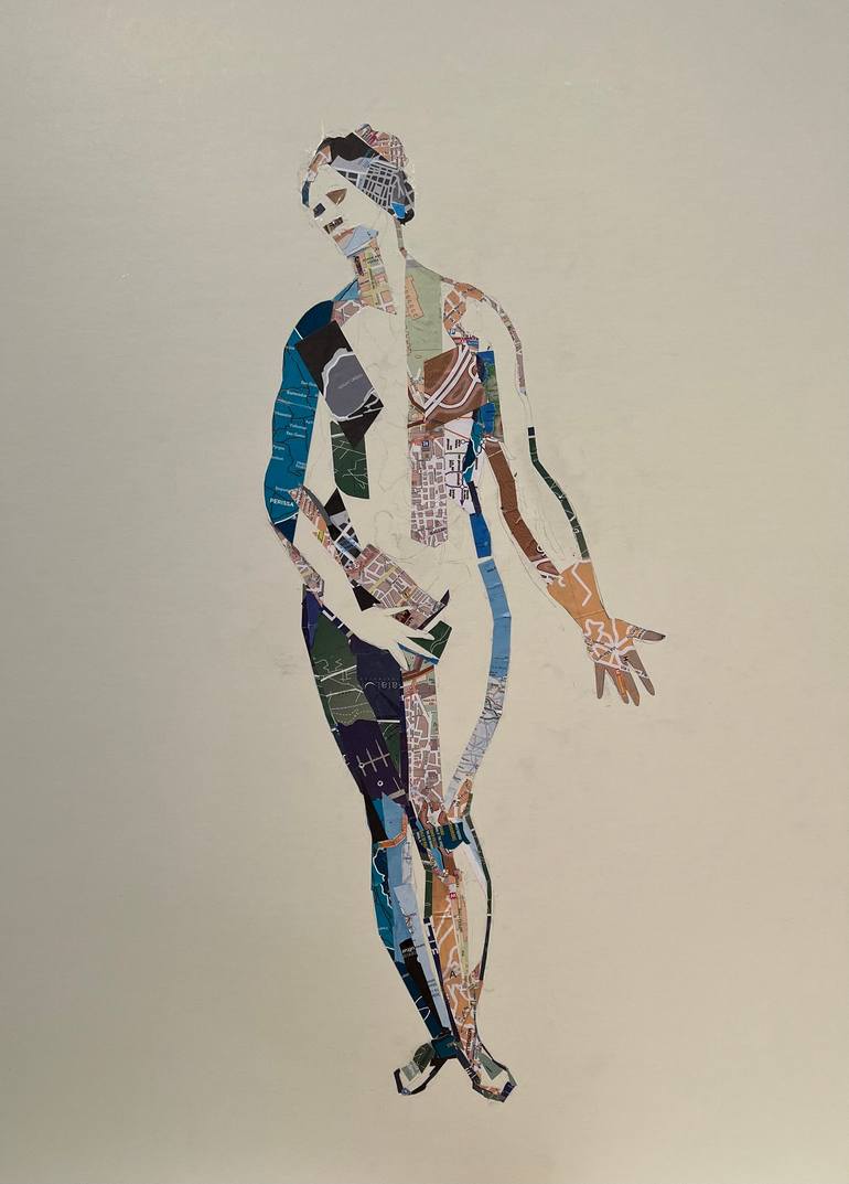 This is a collage made of maps which were used by the artist during travels to the Mediterranean. The Venus figure was inspired by ancient Greek and Roman artwork viewed during the voyage.