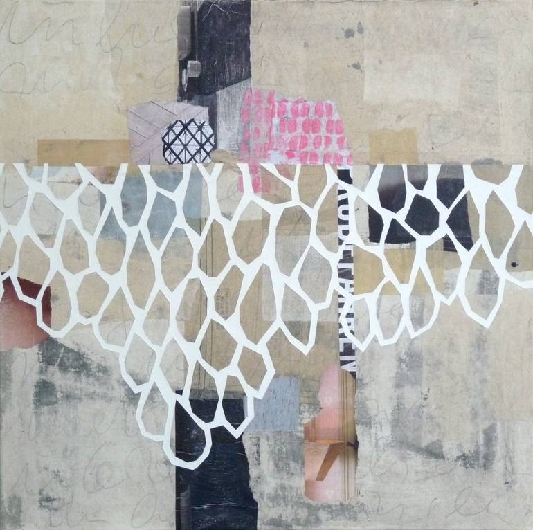 To create my collage paintings I works with different kinds of paper and acrylic paint. My work for me represents the process of every day life; collecting experiences, impressions and places, getting older, remembering and forgetting. This collage on canvas is framed in an off white light weight wo...