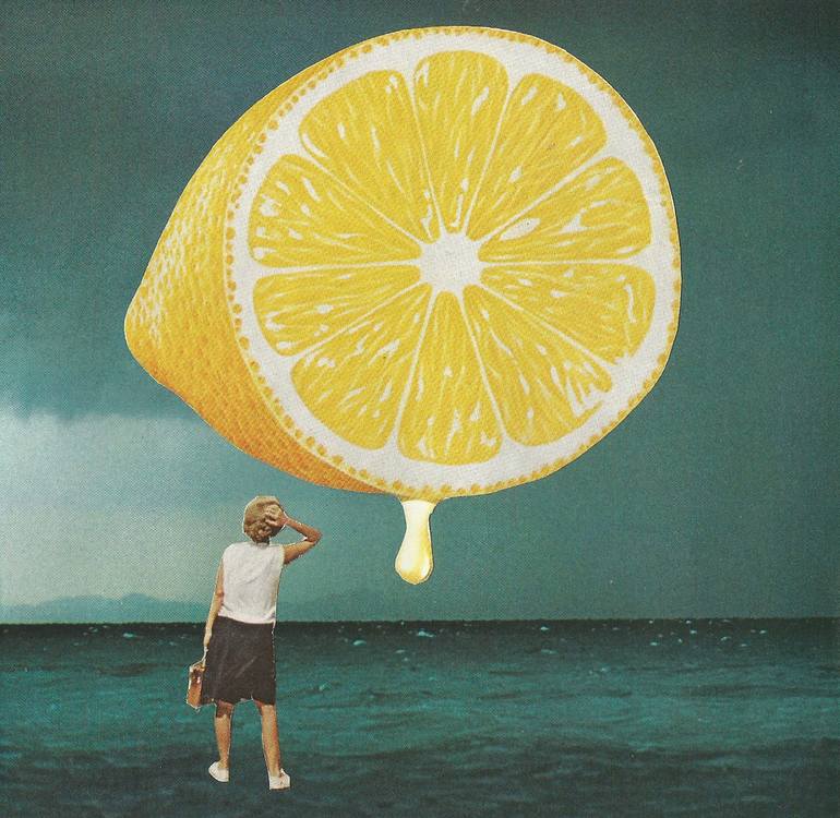 When life gives me a lemon I create art with featuring a lemon. Handmade collage art.