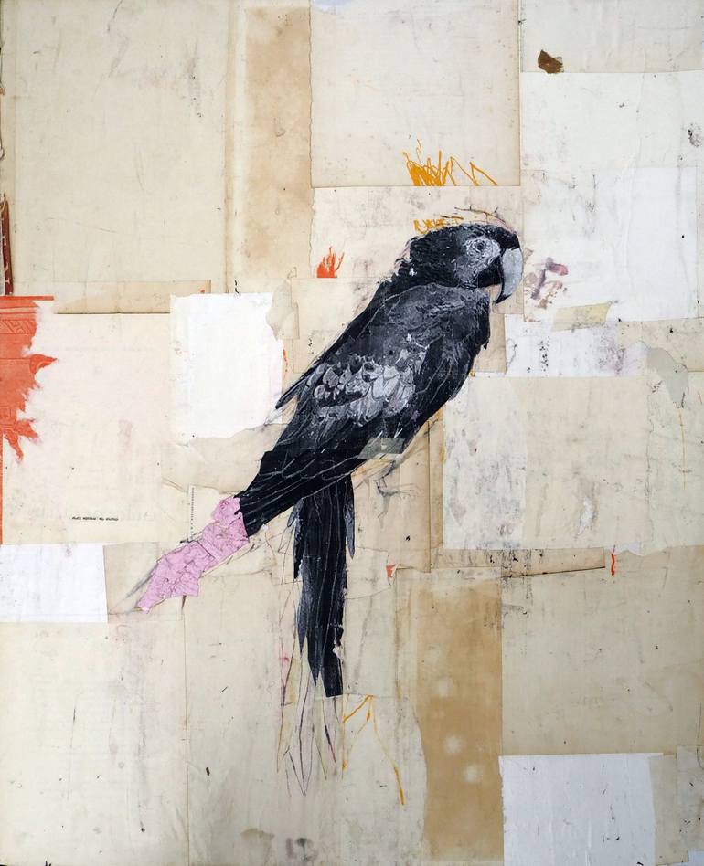 born 1976. Despite the varied painting and thematic subjects that Jeroen Blok tackles, ranging from abstract material research to series in which figuration and abstraction create an exciting balance, his signature style is very recognisable for those who delve into his oeuvre. A serial approach is typical of his working method as well as his evident pleasure in experimenting with techniques and materials, resulting in an unconventional use of collage technique, intriguing layers and a narrative visual language. The working method and the chosen themes show the need for complete autonomy and a degree of maladjustment, contradiction and obstinacy. And if I were to say that he is enthusiastic or driven, it would be an understatement: possessed comes closer. In other words, an enormous inner drive, or, as can be said so beautifully in German: making art "aus innere Notwendigkeit", because you cannot do anything else. This is reflected in an enormous flow and production. His work is characterised by a critical attitude, a commentary on what is going on in the world and the social cohesion amongst people. This is accompanied by a great desire for freedom, an opposition to any form of patronage or restraintment. In Blok's recent work, for example, people regularly appear as small and insignificant creatures, who seem to surrender or try to break free from the pattern. The results are bold, sometimes subdued or even poetic. He himself says of his work: "My paintings and drawings are best read as work in which perception, free interpretation and image converge with one another.”
