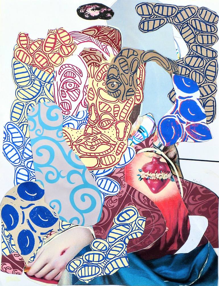 On n'est pas obligé d'être attiré par ces superpositions de rondeurs, il n'en est pas moins vrai qu'elles interpellent ! Ces monstres difformes d'un réalisme saisissant sont posés à l'huile ou à l'acrylique sur toile. Mais ce n'est pas tout, loin de là. L'artiste joue les superpositions, bien visibles quand on se place sur le côté de la toile et que les reflets de lumière accusent les épaisseurs. Utilisant la technique du collage qui se devait, à l'origine, de stimuler l'invention créatrice, Marlin emploie tout ce qui lui tombe sous la main - des bouts de tissus, des fragments de papier calque ou de papier-patron couture - qu'il découpe, compose, mélange, réhausse de couleurs, voire de morceaux de radiographies, fémur, colonne vertébrale, savamment placés à certains endroits pour créer des ombres. Le travail de Marlin, très répétitif, ne manque pas d'attirer la curiosité comme au cirque on s'amuse au spectacle du nain à bosses multiples faisant sur la piste ses pirouettes. On songe aussi aux poupées de celluloïd et de chiffon de notre enfance si souples qu'on pouvait en contorsionner sans risque bras et jambes et même zieuter, un peu sadiquement, les sombres points d'ancrage où se fixaient les membres. Tous ces personnages "impitoyables et graves" constituent un univers peu banal, parfois effrayant nuancé toutefois par une palette chromatique légère et raffinée adoucissant le propos. Pascal Marlin nous semble être un tendre gonflant ses fantasmes pour les mieux apprivoiser ! La lettre mensuelle Les chroniques de Colette Bertot / Février 2005 Pascal Marlin. Bizarre... Vous avez dit "bizarre"? A la Contrast Gallery de Bruxelles