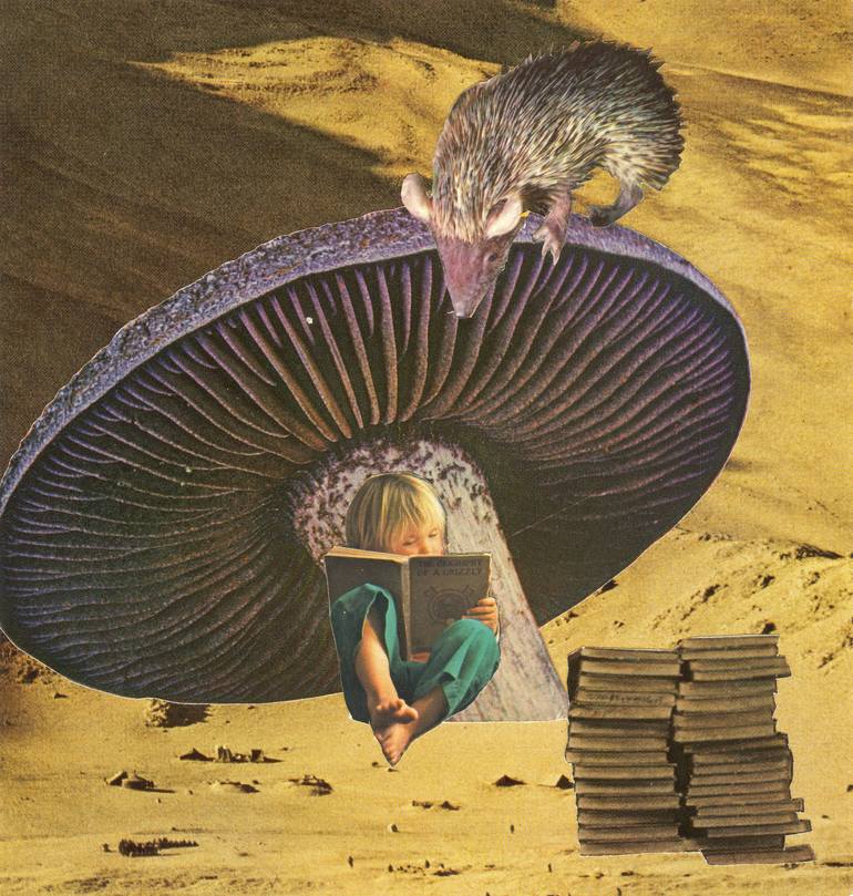 Tracy Jager (aka livingferal) creates poetic dreamscape collages. She also draws and paints, works with fabric and wood, and writes. Her dreamscape collages have a strong narrative aspect, often with a touch of humor, and explore psychological terrain. They frequently reference her interests in philosophy, poetry, ecology, fairy tales and myths. Her expressive drawings and paintings focus primarily on flora and fauna, though she occasionally does figurative work. She does minimalist black ink drawings as well as expressive color pieces with charcoal, chalk pastel, acrylic and gouache. Recently she's begun translating some of her drawings into laser-cut wood pieces. Her work is held in private collections around the world, as well as in public collections in Canada. You can also see her work at