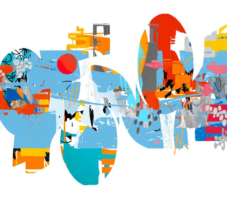 This piece is from a series of work all done in a short space of time, it is inspired by colour and shape and most importantly by the music I was listening to when I created the collection of work. It is an original piece printed on Hahnemühle German Etch 310gsm