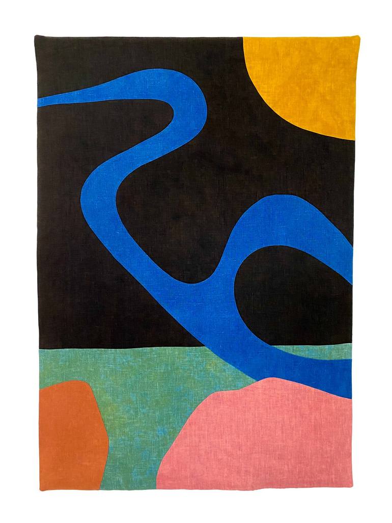 Jeeyon ‘G’ Roslie is a Korean-American textile artist and natural dyer based in Santa Barbara, California. She creates her own, bespoke palette for each work of art by hand dyeing yardages of flax linen with botanical plant and earth mineral pigments. Her compositions are stylized and evocative with simple, contrasting shapes of cut and sewn panels. The imagery of her work is reminiscent of modernist abstraction, the stillness of Zen minimalism, 1970s craft revival and is influenced in part by the artist’s love of poetry and poetic living. She also creates textile collages using remnants allowing for minimal waste in her artistic process. Her work seeks to encourage slow, quiet, contemplative reflection and explores themes of patience, solitude/belonging and being present in the world. Use of all natural, non-toxic materials is important to the artist in an effort to live harmoniously within the environment.