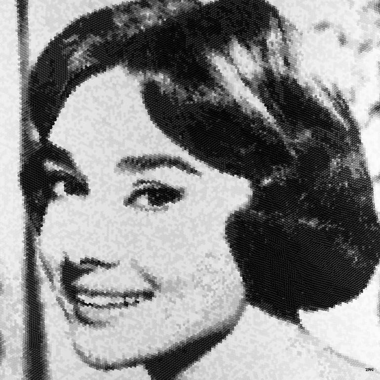 re. Audrey Hepburn, 114x114(cm), stickers, urethane resin, acrylic board, aluminium profile, 2012. Stickers are the basic stuff of my work. First I design various types of stickers of my own and then have them printed. I put the printed stickers together on an acrylic panel to produce selected imag...
