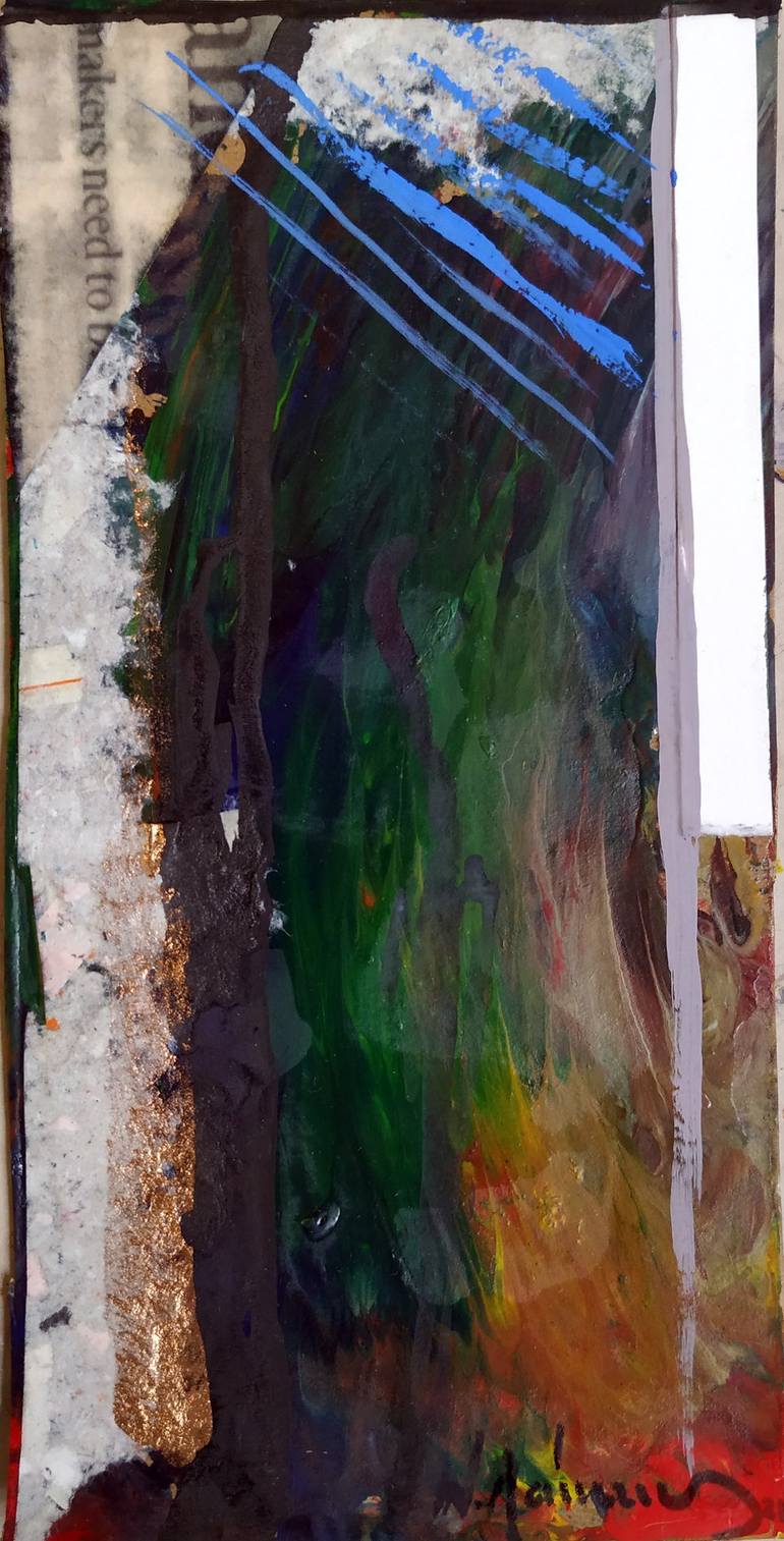 These artworks came out of my attempt to use different techniques as well as trying to reuse paper. The cartons are kept from various boxes. So I worked with monotype which I then processed adding a block of color, a different texture, motifs, and these are the results. I also experiment with collag...