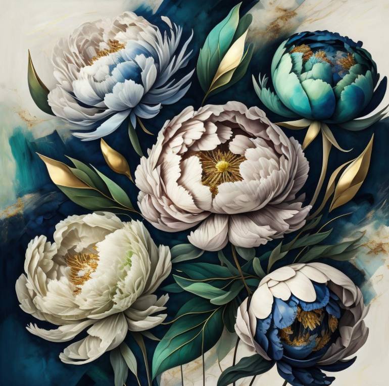 Abstract Blue Green peonies Find the perfect piece for your living space today. Made with museum-grade paper (175gsm fine art paper).Matte finish.