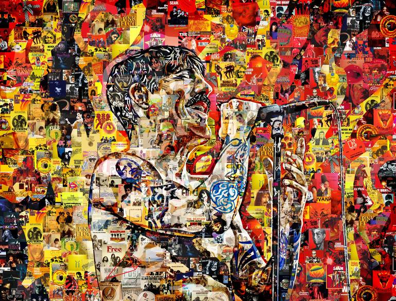 Anthony Kiedis is an American musician and founding member and lead vocalist of the rock band Red Hot Chili Peppers. Kiedis and his fellow band members were inducted into the Rock and Roll Hall of Fame in 2012. Certified print of the original digital collage made out of music albums covers 1960-80s....