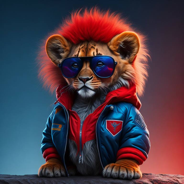 lover and passionate about animals, beautiful illustration of a luxurious baby lion
