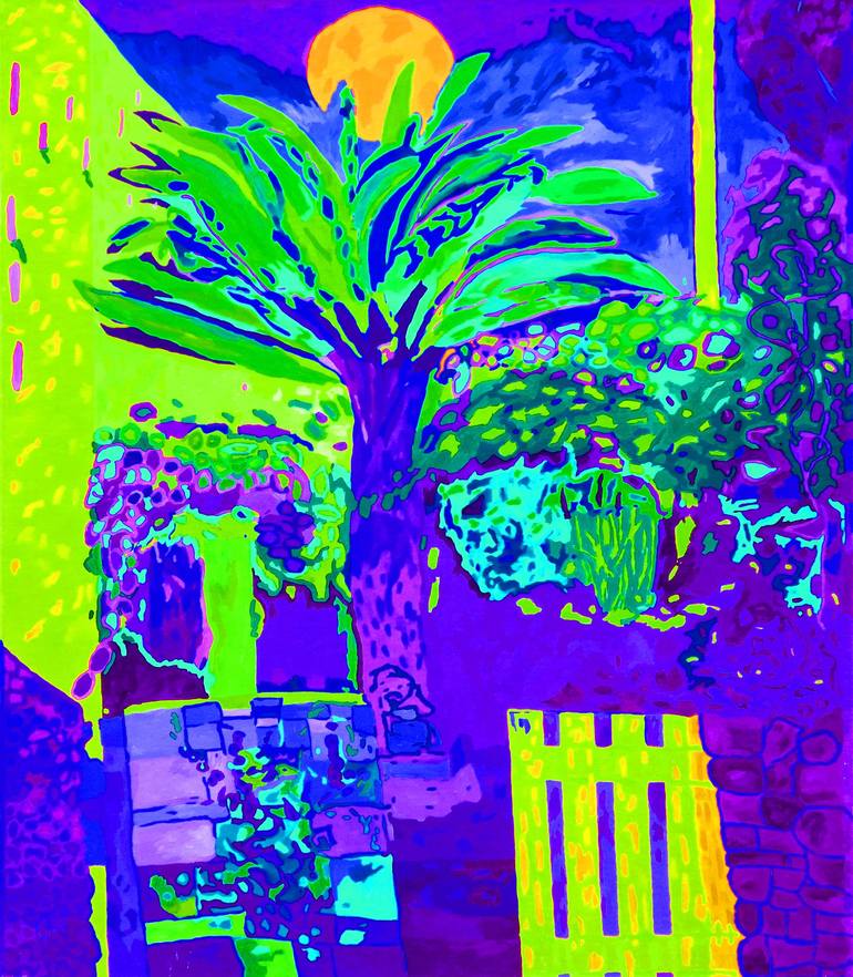Tjasa Iris created this work as a derivative work of her 1996 painting BIG PALM, that she painted in a garden in Italy. Depicting its lush vegetation, bright colors and strong light. It exists as an NFT and as a print (inkjet on textured pvc canvas), in edition of 12, created in 2024. Hand signed ...