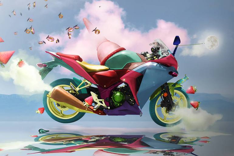 This is a digital artwork I decided to create after my ‘Ice-car’ digital piece now realising that I haven’t been applying the same skills to the motorcycle artworks. This time I comprehensively cut out each piece and coloured it in liking to an ice-cream, like to car artwork. About the material it'...