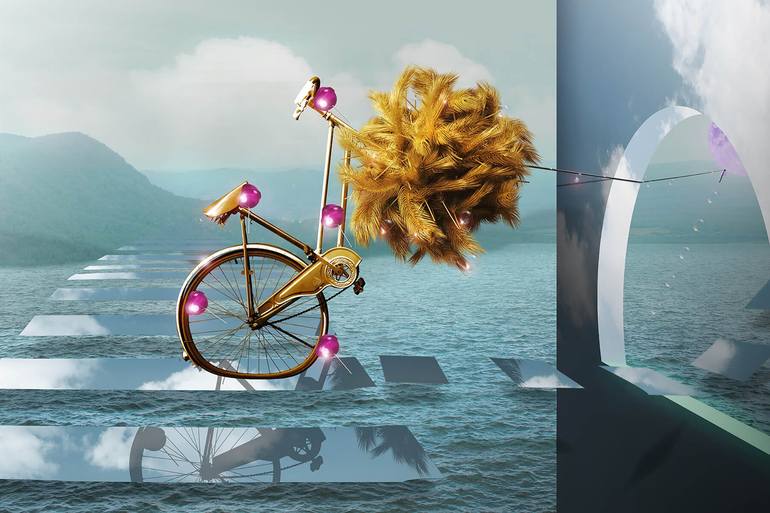 This is a digital artwork I originally intended to create a bicycle with car parts, this didn't work out and this is how it ended up. About the material it's printed on: This digital artwork print uses a special technology where the ink is infused into the metal (no worries about people pulling the...