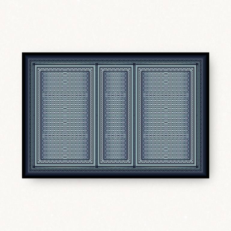 "Blue Rhythm - Vishuddha" LIMITED EDITION of 25 Hand signed and numbered by the artist. Is accompanied by a certificate of authenticity. This artwork is a contemporary reinterpretation of a traditional yantra, merging spiritual symbolism with technological aesthetics through fractal geometry. Its i...