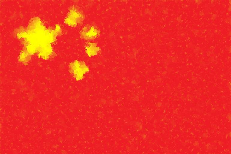This artwork immerses us in a sea of intense red, evoking the passion and energy of an ancient country. Within it, five blurred and intertwined golden stars seem to float. Vibrant brushstrokes and irregular textures add depth and dynamism to the work, creating a sense of movement and expansion.