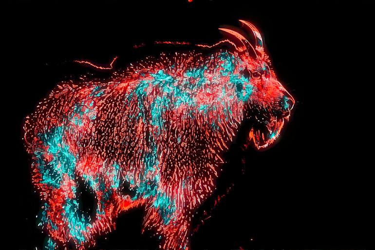 "Introducing 'Peak Pop Culture,' a vibrant fusion where the rugged elegance of a mountain goat leaps into the neon-lit streets of pop art. This artwork captures the spirit of adaptation, showcasing how nature's grace can blend seamlessly into urban expressions. With bold colors and dynamic lines, 'P...