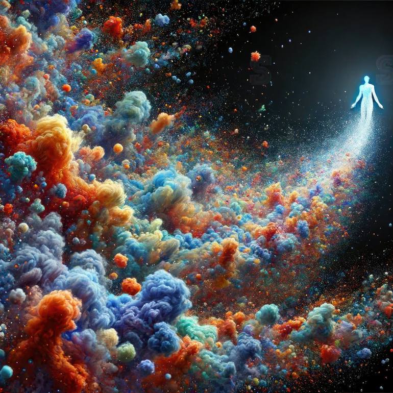 The centerpiece of the collection, "Cosmic Convergence," embodies the ultimate fusion of matter and consciousness. This masterpiece captures the awe-inspiring moment when particles from across the cosmos unite to create a singular, glowing human form. Inspired by the infinite journey of life and the...