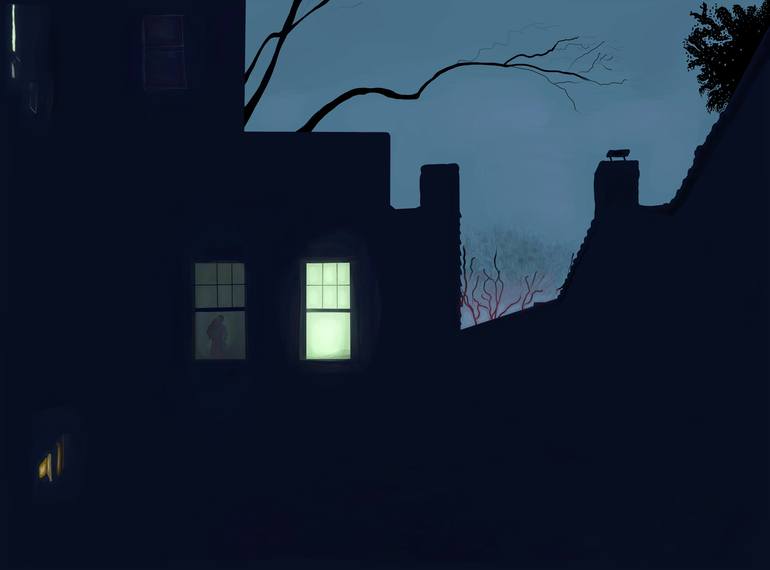 This image is drawn freehand on an iPad with an Apple Pencil and is beautifully printed with archival, Epson ink on fine art paper. Only one print will be made. A larger print size is possible upon request. The view as seen from my rear window at home in Brooklyn.