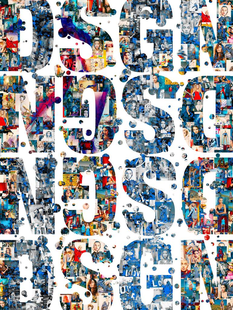 A graphic print on glossy paper that was built from a series of photographs that were captured over many years of photographing fashion. Edition: 1 of 5