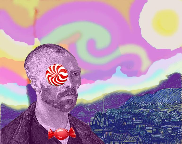 This digital artwork was created for The other avatar project. With respect to the great master, the author added a little humor to the self-portrait of the famous artist: candy sky and Sweets which is associated with the world-famous painting "Night" of the artist himself. Photo Poster on Glossy ...