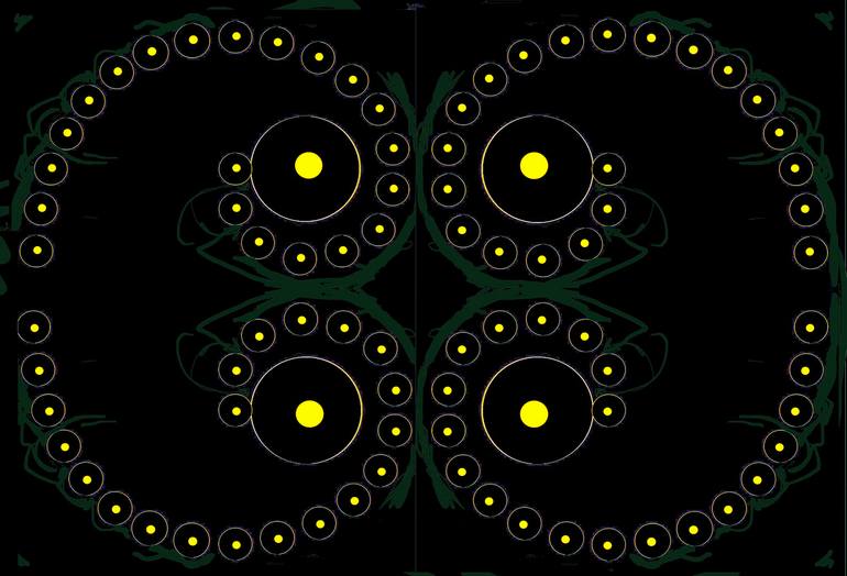 Dotted Spirals 3b4b is a constructed abstraction of circles in 4 symmetrical spiral paths. I am offering this image in 3 ADDITIONAL SIZES -- 20.4” H x 30” W at $1500. // 27.2” H x 40” W at $2750. // and 40.8” H x 60” W at $6000. - If you want any of these sizes, use the "Make an Offer" option (in t...